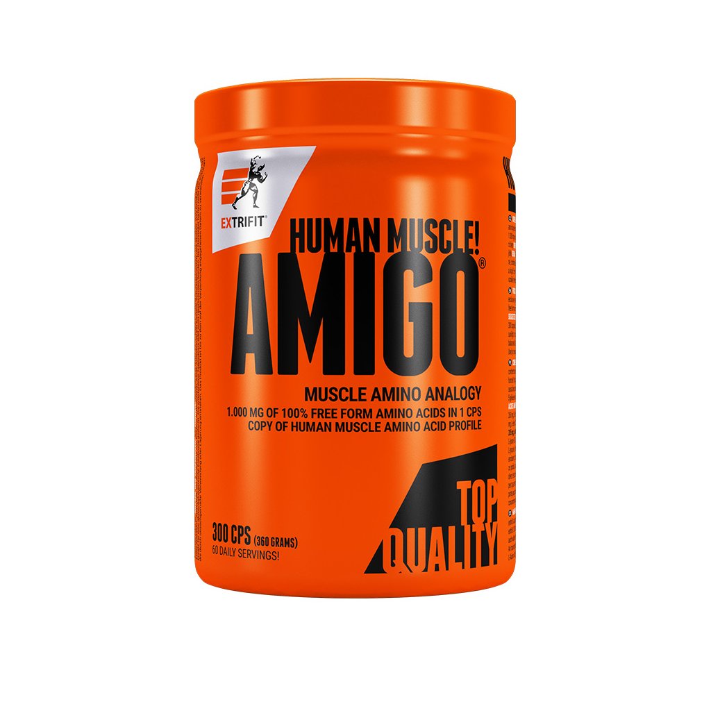 Svalová bílkovina je složena z 18 hlavních aminokyselin. Tyto aminokyseliny mají přesně daný poměr. Některé jsou ve svalu zastoupeny více, jiné méně. Avšak žádná nesmí chybět! A žádná nesmí naopak vyčnívat nad fyziologický poměr. Bez zajištění této jednoduché podmínky Vám sval prostě nevyroste.Co v Extrifitu udělali? Vzali bílkovinu lidského svalu (její aminospektrum) a vytvořili její přesnou kopii. Všechny aminokyseliny navážili jednu po druhé a ve stejném poměru tak, jak jsou zastoupeny v lidském svalu a dali je do kapsle. Vzniklo Amigo - lidská svalová bílkovina v kapslích!