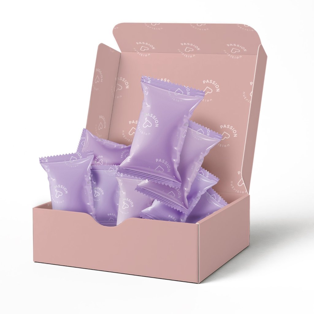 - fialová: Coffeela: datle, mandle, hrachový protein, pekany, karob, mletá káva