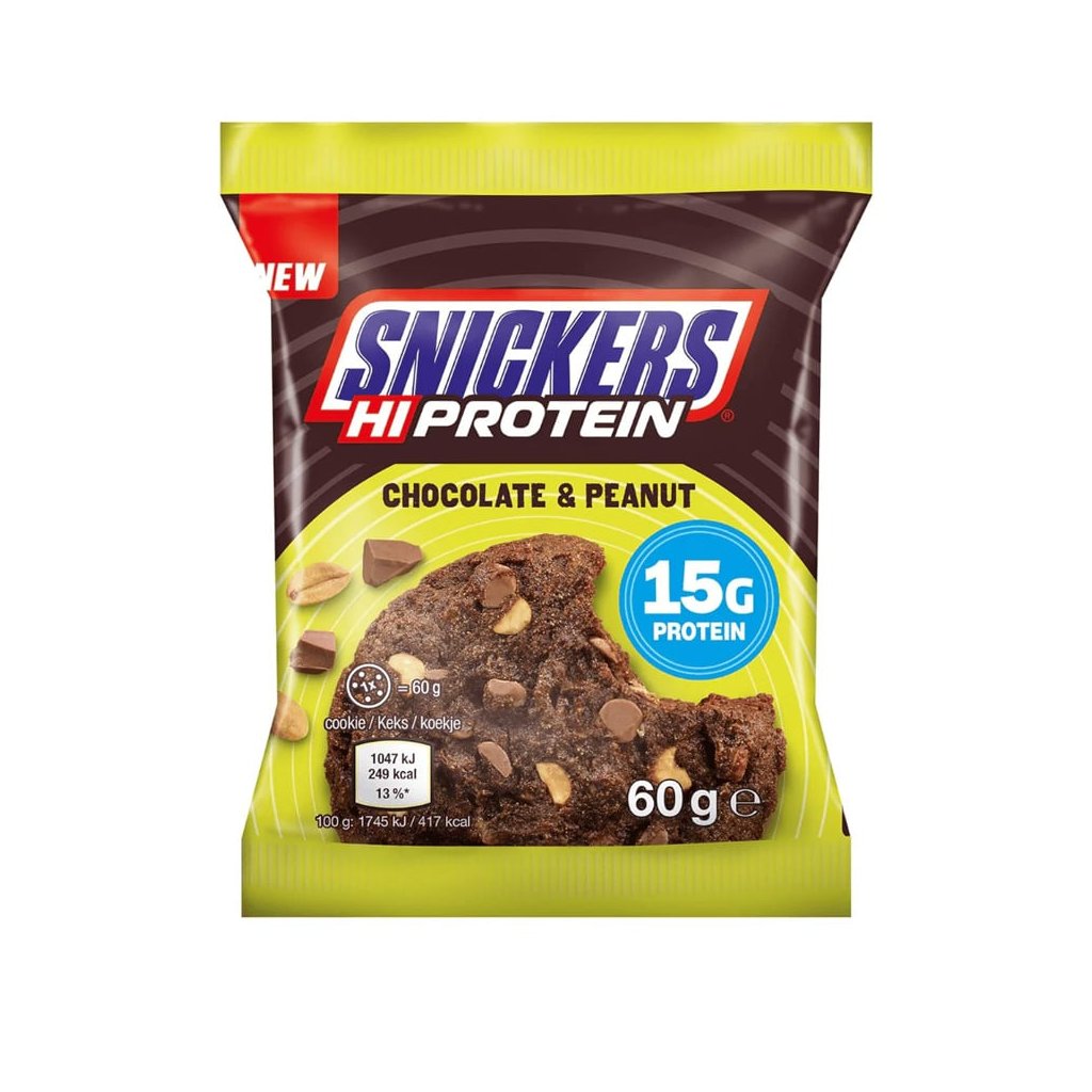 Měkká pečená čokoládová sušenka s kousky čokolády a karamelu a nakrájenými arašídy pro větší křupavost, plná bílkovin! Nová inovace společnosti Mars, která uspokojí vaši chuť na sladké a touhu po chutném pohoštění bez pocitu viny.15 g bílkovin